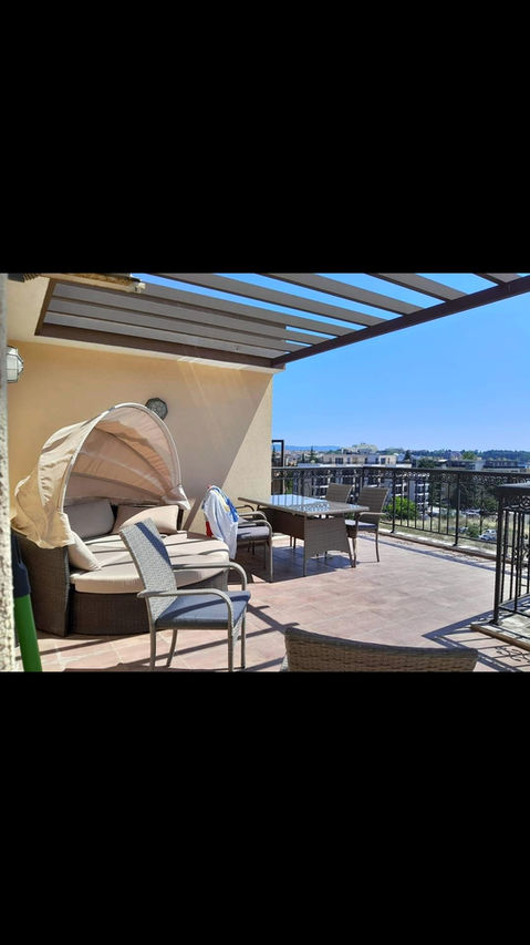 Med sine to store, private og behagelig møblerte toppetasje-terrasser og med utsikt mot Svartehavet, er leiligheten en unik oase under den bulgarske himmelen
